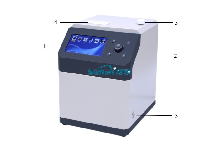 Notes: 1. LCD display screen 2. Buttons 3. Oil filling port 4. Printer 5. Power switch